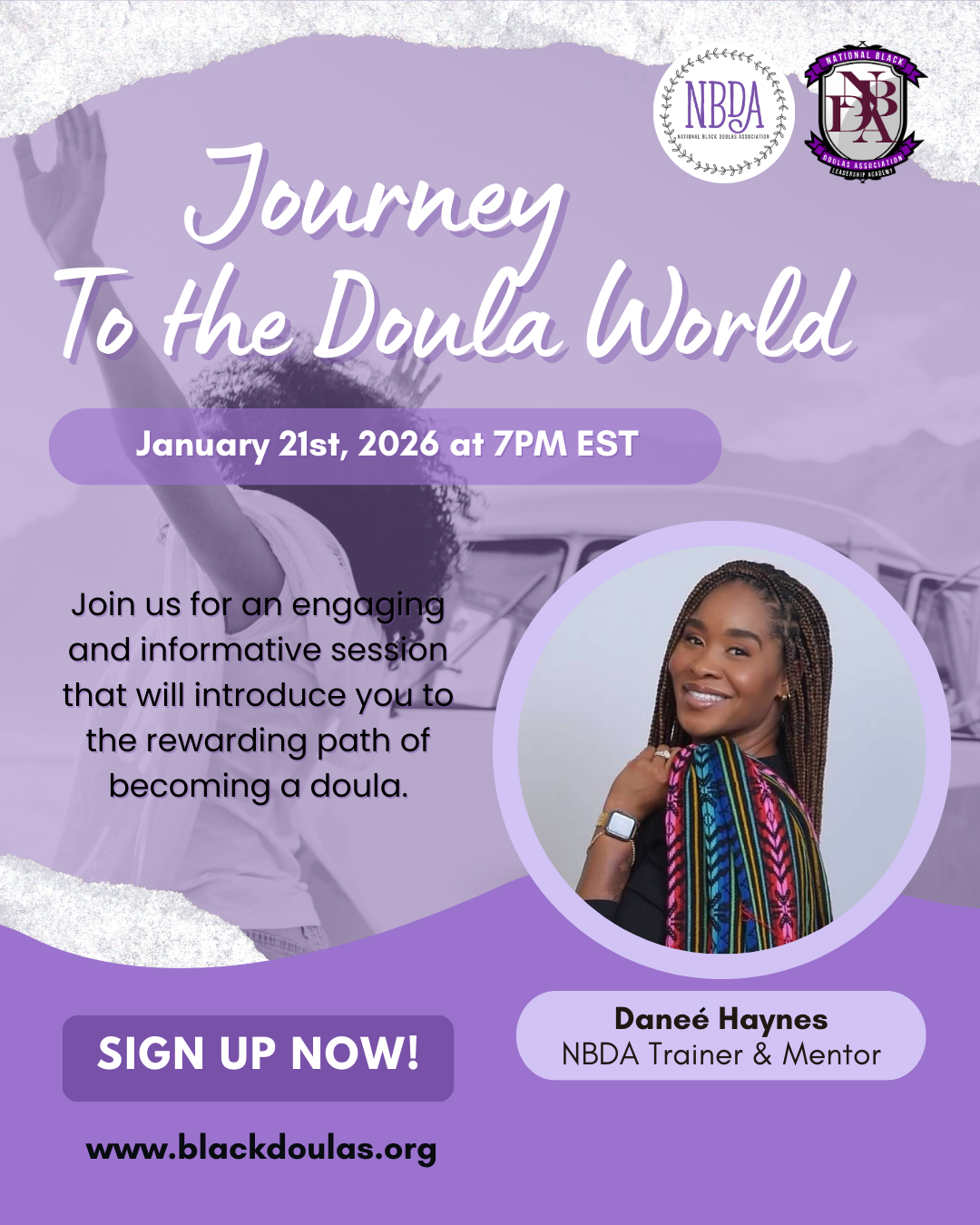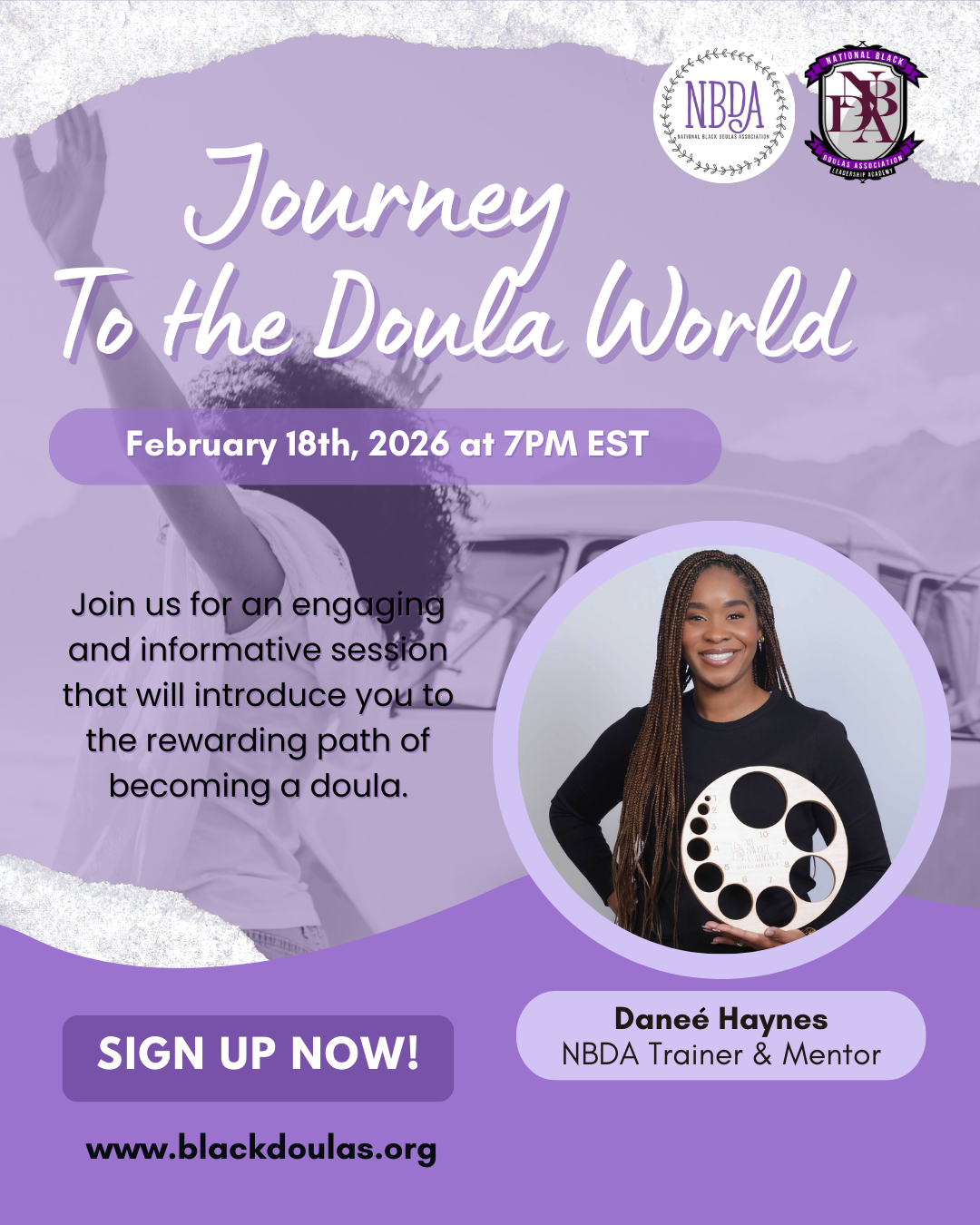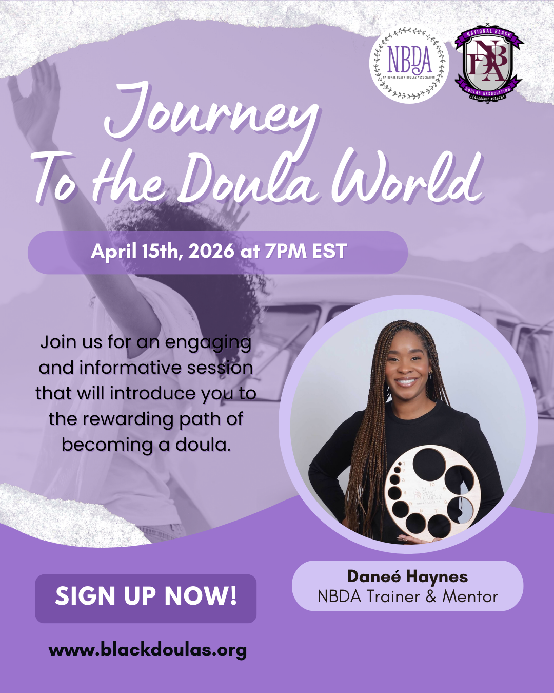 Hosted by the National Black Doulas Association (NBDA), this event is designed to help parents understand the vital role doulas play in supporting families — physically, emotionally, and mentally. You'll walk away with practical tools and insight to make informed decisions about your birth experience and postpartum care.