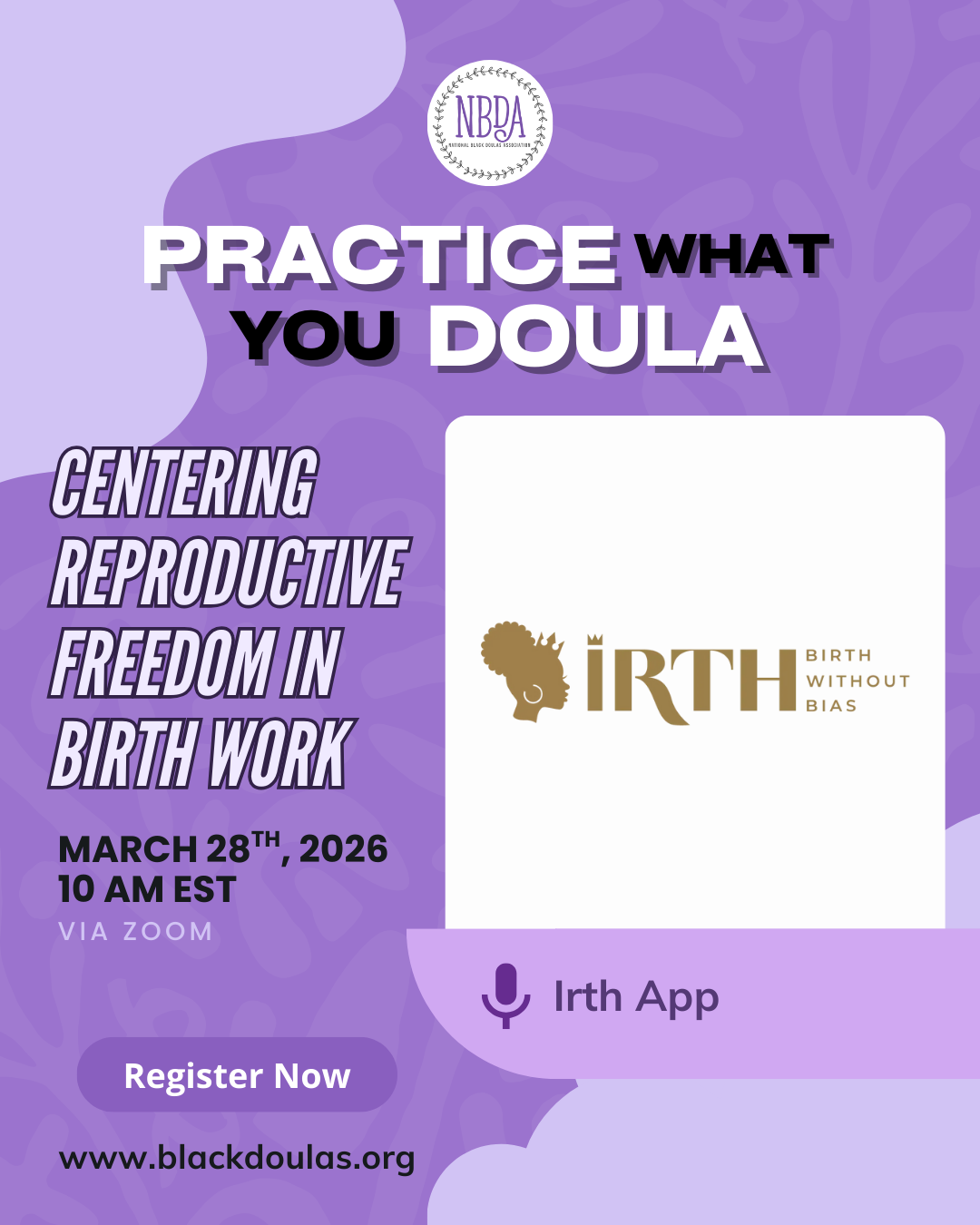 Elevate your practice with Practice What You Doula, the National Black Doulas Association’s monthly workshop series designed to blend real-world strategy, cultural grounding, and practical doula wisdom.